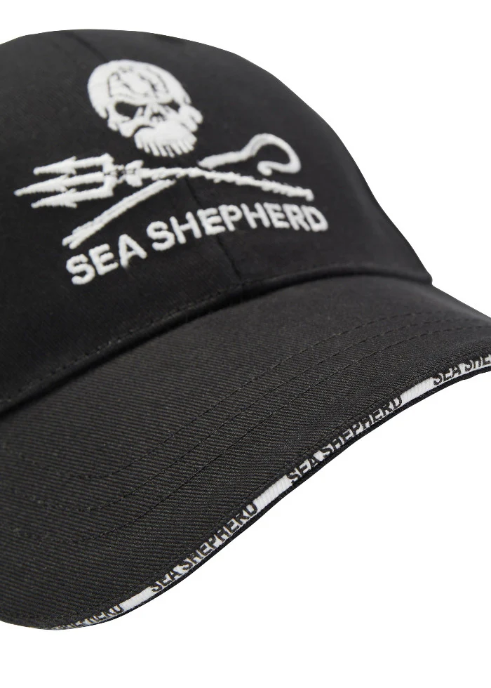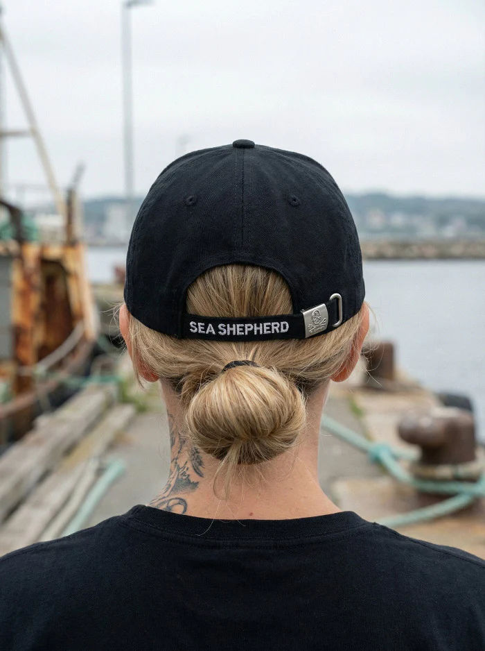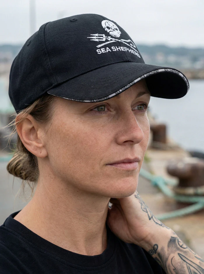 Das Jolly-Roger-Logo zeigt unsere eigene kreative Version der Piratenflagge. Es wurde von dem Künstler Geert Vons entworfen und zeigt, wofür wir stehen. Der gekreuzte Hirtenstab und Neptuns Dreizack sind das Symbol für unsere Wache über die Lebewesen in den Ozeanen und unsere Entschlossenheit für sie zu kämpfen, damit sie frei im Meer leben können. Der Totenkopf repräsentiert den Tod, den die Menschheit den Ozeanen bringt. Yin und Yang – Wal und Delfin – hingegen symbolisieren unser Ziel, die See wieder ins Gleichgewicht zu bringen, die Anmut der Delfine und die Weisheit der Wale zu erhalten.