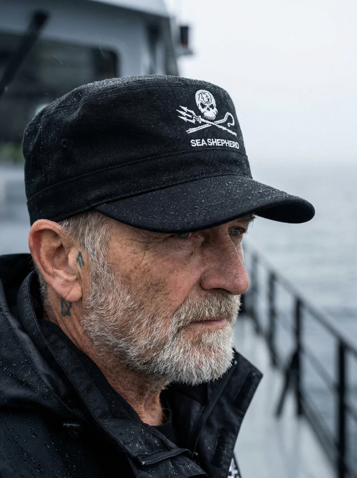 Das Jolly-Roger-Logo zeigt unsere eigene kreative Version der Piratenflagge. Es wurde von dem Künstler Geert Vons entworfen und zeigt, wofür wir stehen. Der gekreuzte Hirtenstab und Neptuns Dreizack sind das Symbol für unsere Wache über die Lebewesen in den Ozeanen und unsere Entschlossenheit für sie zu kämpfen, damit sie frei im Meer leben können. Der Totenkopf repräsentiert den Tod, den die Menschheit den Ozeanen bringt. Yin und Yang – Wal und Delfin – hingegen symbolisieren unser Ziel, die See wieder ins Gleichgewicht zu bringen, die Anmut der Delfine und die Weisheit der Wale zu erhalten.