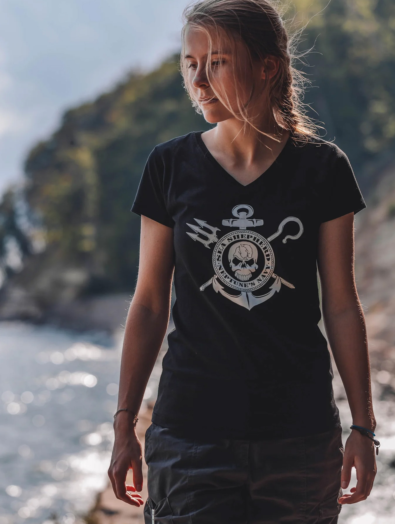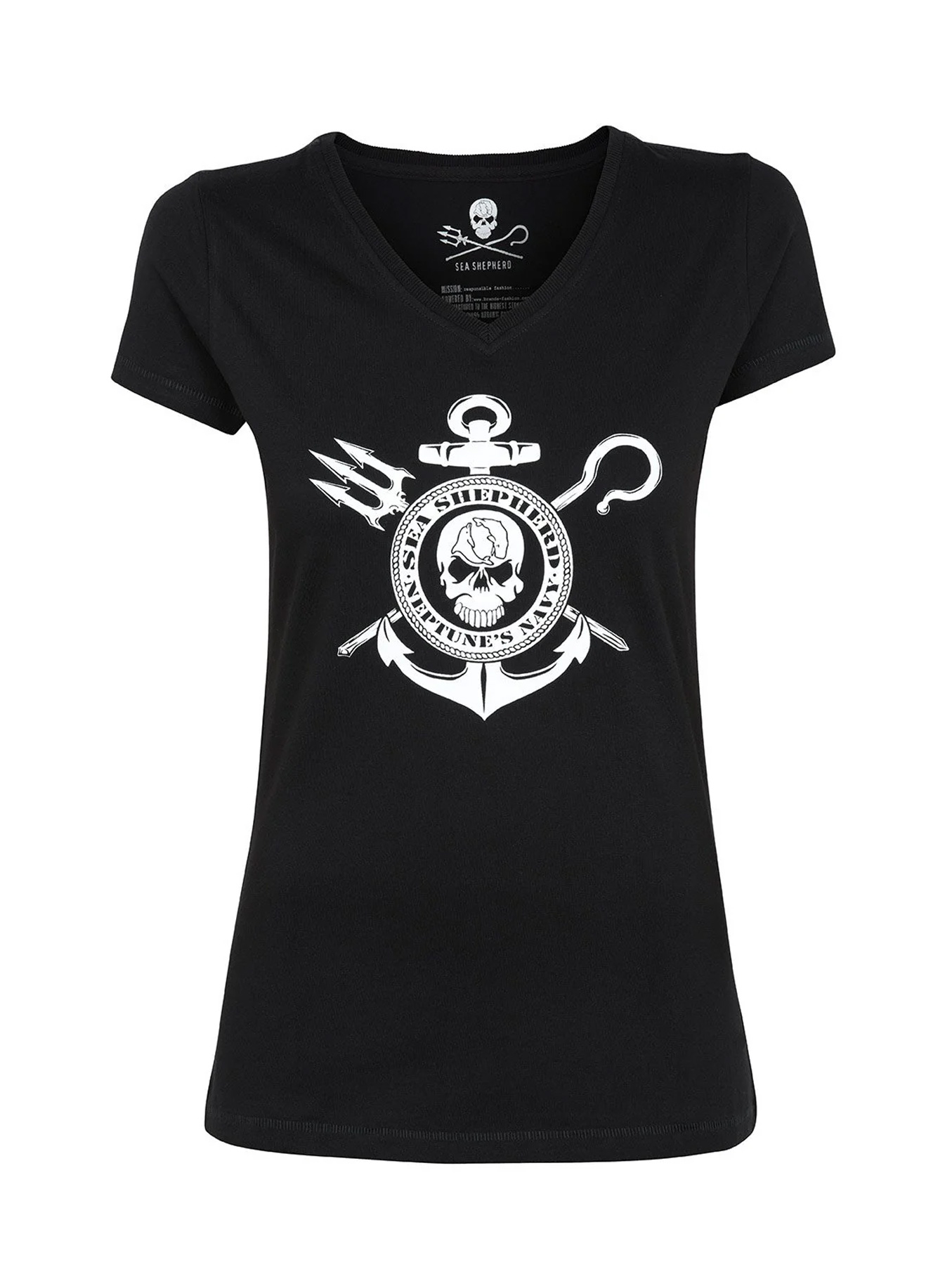 Kurzarmshirt mit dem „Neptune’s Navy“ Logo aus 100% Biobaumwolle.