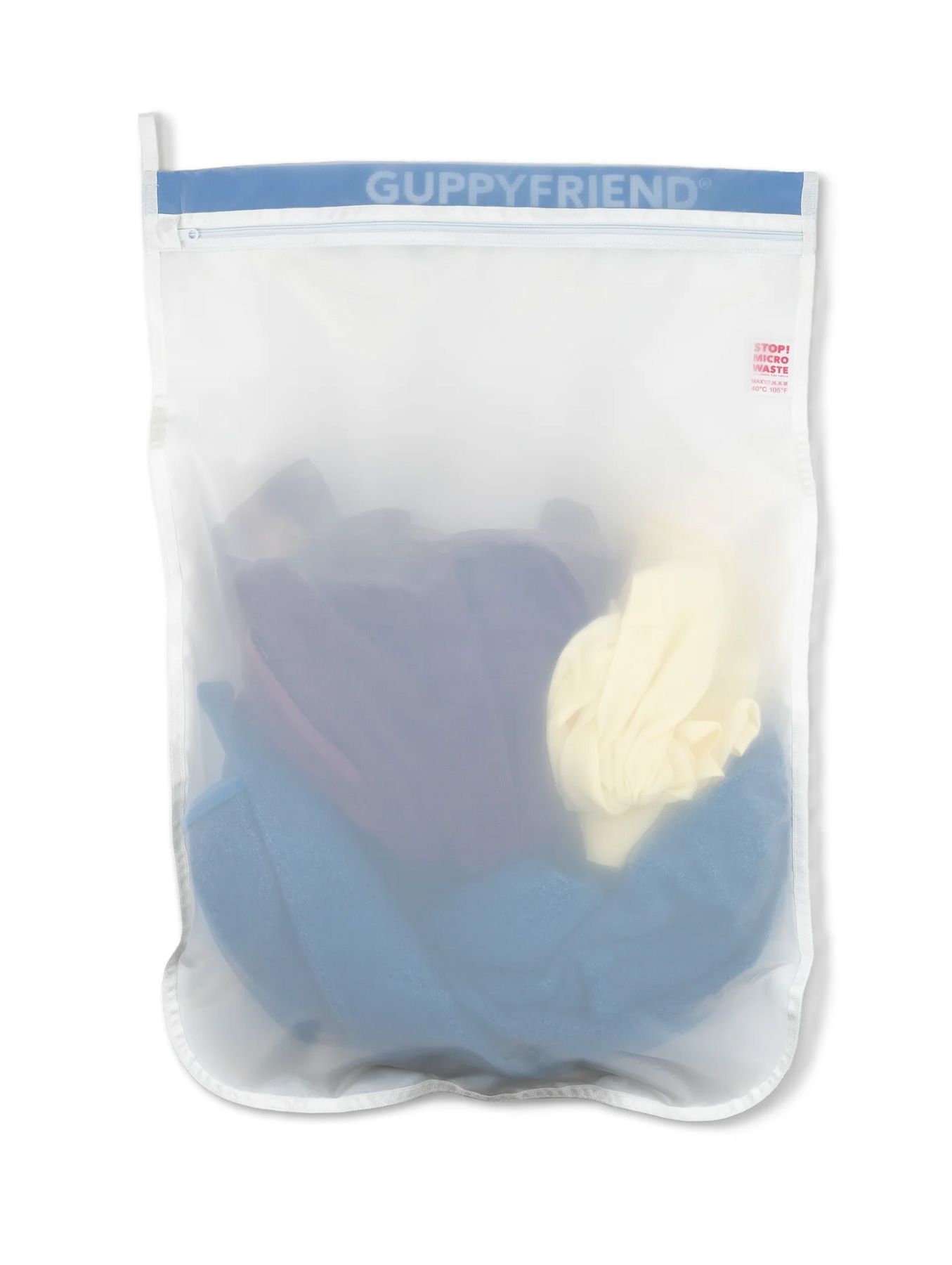 Der GUPYYFRIEND Waschbeutel ist eine wissenschaftlich bestätigte, patentierte Lösung gegen Verschmutzung durch Mikroplastikfasern beim Waschen und die einzige, die Kleidung und Umwelt schützt.
