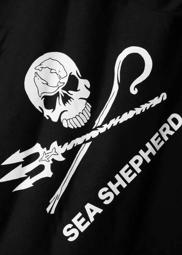 Es bedarf eines Piraten, um einen Piraten zu stoppen! Das stellten schon Henry Morgan und Sir Francis Drake vor mehreren Jahrhunderten unter Beweis. Das „Jolly Roger“ Logo zeigt unsere eigene kreative Version der Piratenflagge. Es wurde von dem Künstler Geert Vons entworfen und zeigt, wofür wir stehen. Der gekreuzte Hirtenstab und Neptuns Dreizack sind das Symbol für unsere Wache über die Lebewesen in den Ozeanen und unsere Entschlossenheit für sie zu kämpfen,damit sie frei im Meer leben können. Der Totenkopf repräsentiert den Tod,den die Menschheit den Ozeanen bringt. Yin und Yang – Wal und Delfin – hingegen symbolisieren unser Ziel, die See wieder ins Gleichgewicht zu bringen,die Anmut der Delfine und die Weisheit der Wale zu erhalten.