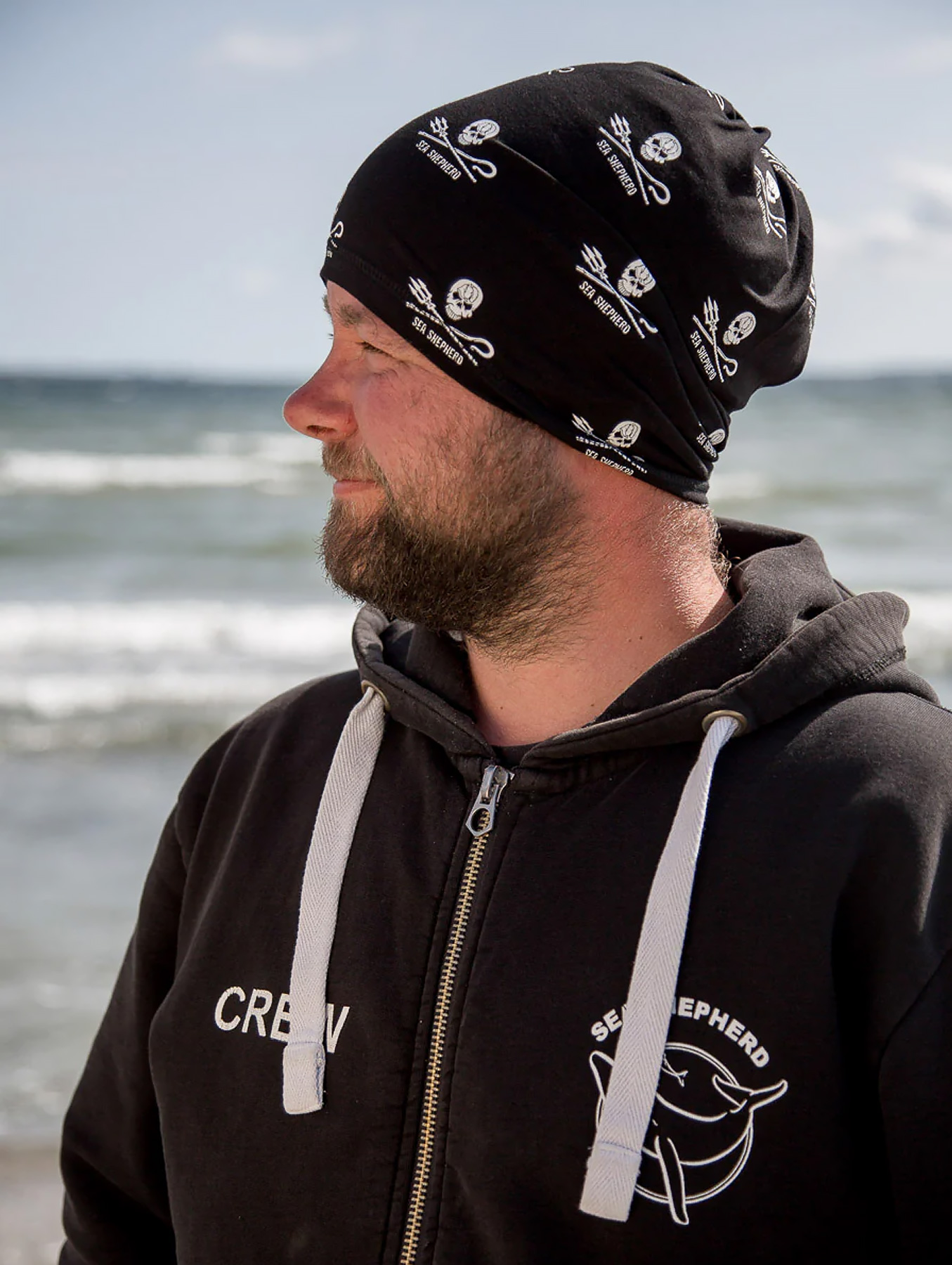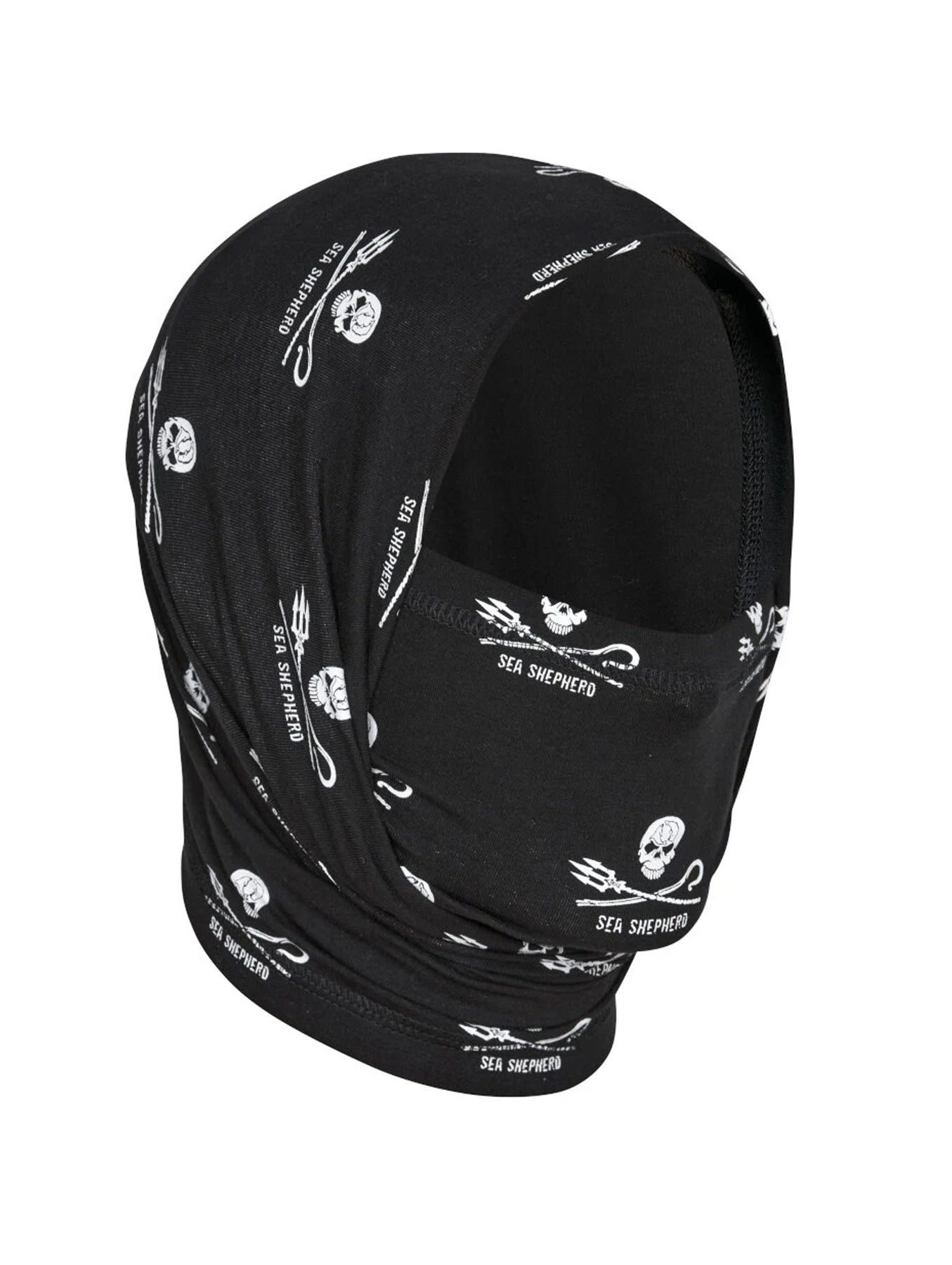 Das Tuch gibt es in zwei verschiedenen Farben: klassisch in Schwarz oder im auffälligen Camouflage-Look. Beide Ausführungen sind mit einem weißen Aufdruck von unserem Jolly Roger versehen.