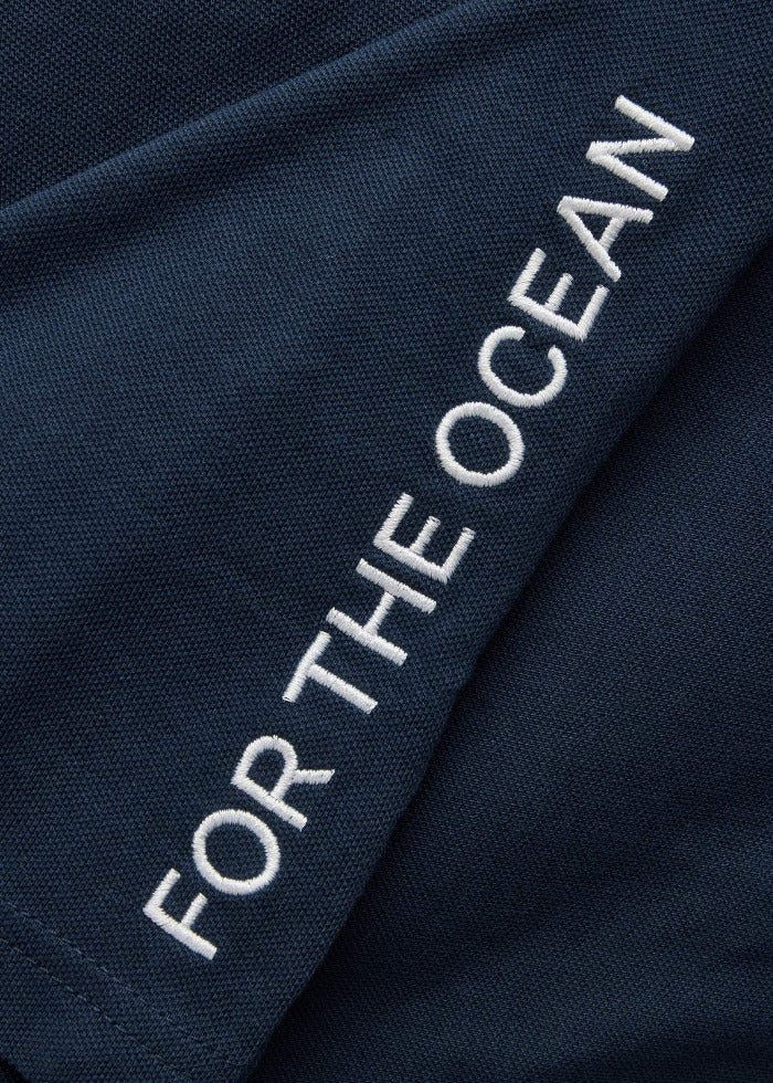 - Rückseite (rechts): gestickter Schriftzug „FOR THE OCEAN“