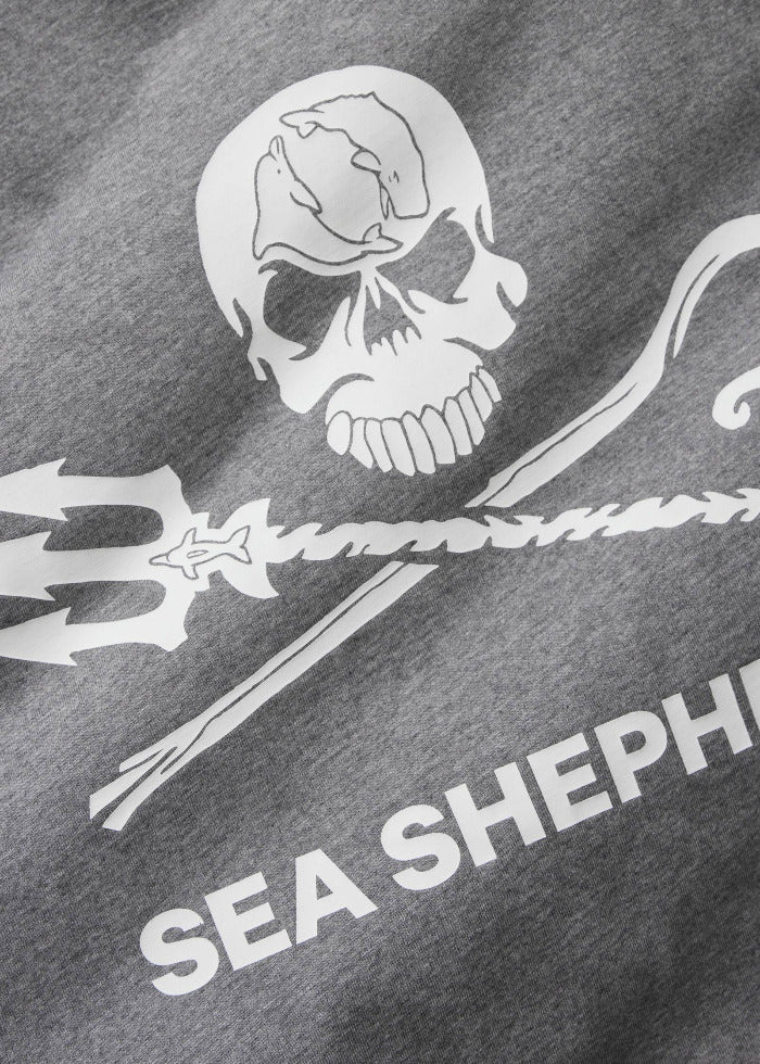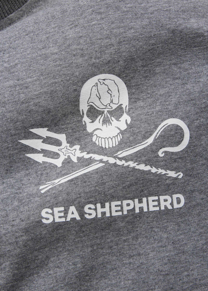 Es bedarf eines Piraten, um einen Piraten zu stoppen! Das stellten schon Henry Morgan und Sir Francis Drake vor mehreren Jahrhunderten unter Beweis. Das „Jolly Roger“ Logo zeigt unsere eigene kreative Version der Piratenflagge. Es wurde von dem Künstler Geert Vons entworfen und zeigt, wofür wir stehen. Der gekreuzte Hirtenstab und Neptuns Dreizack sind das Symbol für unsere Wache über die Lebewesen in den Ozeanen und unsere Entschlossenheit für sie zu kämpfen,damit sie frei im Meer leben können. Der Totenkopf repräsentiert den Tod,den die Menschheit den Ozeanen bringt. Yin und Yang – Wal und Delfin – hingegen symbolisieren unser Ziel, die See wieder ins Gleichgewicht zu bringen,die Anmut der Delfine und die Weisheit der Wale zu erhalten.